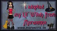 There are just a few rules to follow: 1. Please link your Lil' Witch back to my site. You can do this either by linking the Lil' Witch, provide a text link back to my site (www.morwenna.de) or link and display the adoption certificate you'll find at the bottom of this page. 2. Please do not link directly to the images on my server. Copy the Lil' Witch you've chosen to your own hard disk (by right-clicking and then choosing "save as") and upload it to your own webspace. 3. I would love it if you could just drop me a note via email or in my guestbook where you tell me where the Lil' Witch will live. 4. ONLY adopt one of those Lil' Witches if you can provide them with a good home and enough space to party & do magic (for this is what they love best!) |